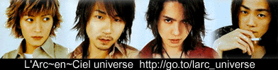 Still popping as ever, L'Arc continued into a new century with new music. "Neo Universe/Finale" was released on January 19th. On April 21st, their fanclub name was changed from "Ciel" to "LE-CIEL". Yukihiro did a remix album for the group called "ectomorphed works" released on June 28th. ""Stay Away" was released on July 19th, the same day their PS1 racing game, Gekitotsu Toma L'Arc: TomaRunner vs L'Arc-en-Ciel was released. On August 30th, their eighth album, REAL was released. It reached number one and sold over a million copies. On October 8th, they began their tour, 2000 CLUB CIRCUIT REALIVE. On November 4th, last tour of the year, TOUR 2000 REAL * began.**REAL on Apple Music* | **REAL on Spotify**